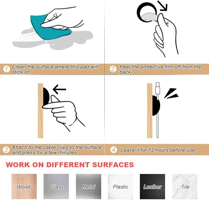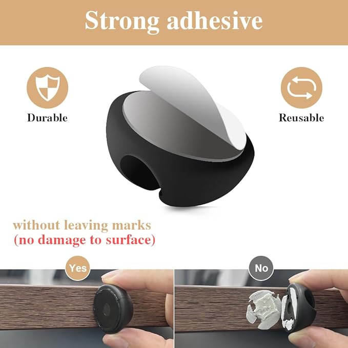 - Easy Installation - The adhesive pad on the back allows you to stick our cord organizer anywhere on smooth and clean surfaces like glass, ceramics, marble, and wood. Just peel and stick the adhesive cable clip after cleaning the surface for the best results. Simple installation for hassle-free cable management