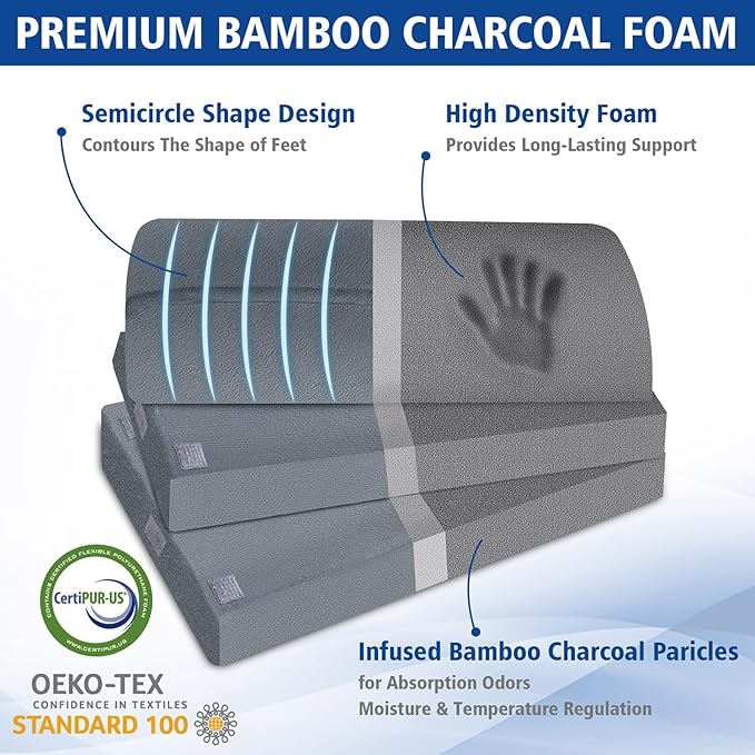 - [Supportive High Density Foam] The foot rest under desk utilizes high-density foam infused with bamboo charcoal particles. Compared to ordinary foam, high-density foam provides better support, less deformation, and greater resilience. Additionally, the filled bamboo charcoal particles effectively regulate temperature and odors.