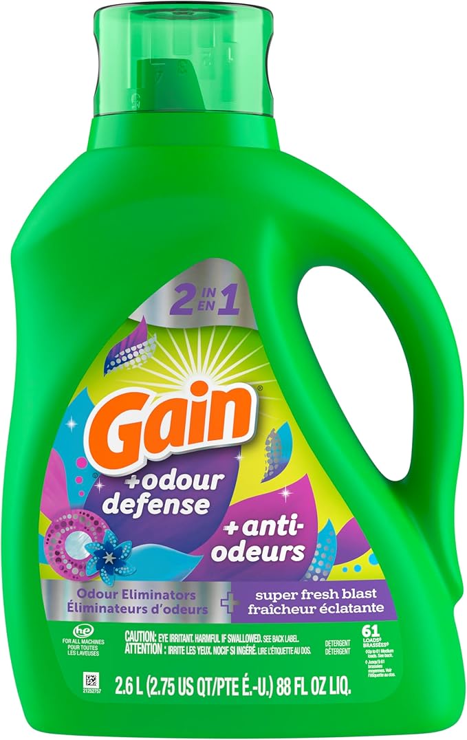 Gain + Odor Defense Liquid Laundry Detergent, Super Fresh Blast Scent, 88 Oz, 61 Loads, HE Compatible