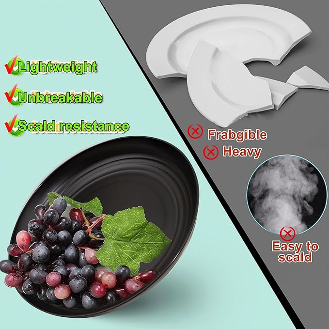 - Value Pack:Our black wheat straw dinnerware sets include 12pcs dinner plates, 12pcs salas plates, 12pcs wheat straw bowsl,12pcs cups, the total is 48 pieces.
