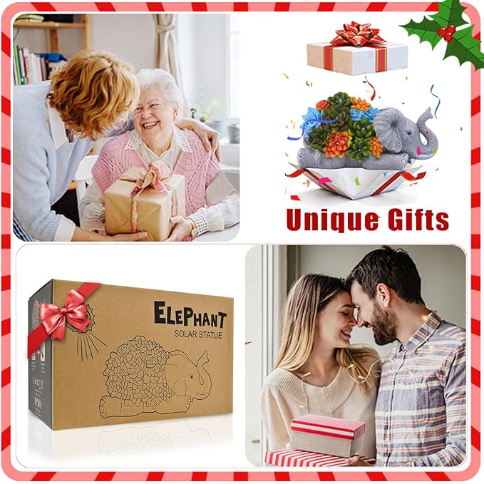 Nacome Elephant Statues with Succulent for Garden Decor: Solar Outdoor Clearance Outside Yard Art Porch Patio Balcony Front Lawn Ornaments –Birthday Gifts for Mom Grandma Women