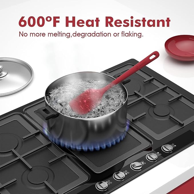 - Premium 100% Food Grade Silicone: The silicone spatula set is made of healthy and friendly material, resistant to high temperatures. No more melting, cracking and worrying