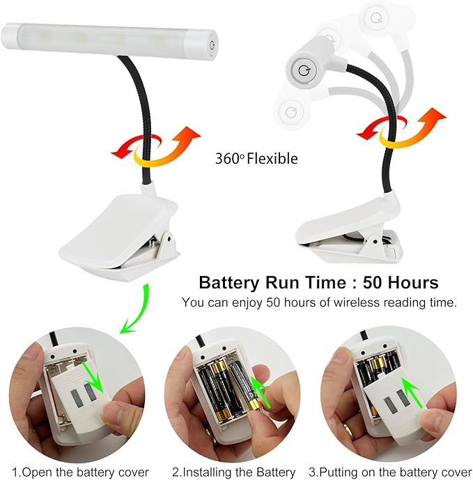 - Battery Operated: This book lamp is powered by 3 AAA batteries (not included), offering safety and reliability compared to frequently fire-catching rechargeable alternatives. Enjoy 50 hours of wireless reading time.