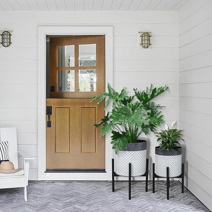 Planter with Stand Set of 2, Mid Century Plant Pots with Metal Legs Indoor, Modern Flower Pots with Drainage Holes, Decorative Garden Pot for Living Room, Office, Garden, or Balcony 10 & 12 inches