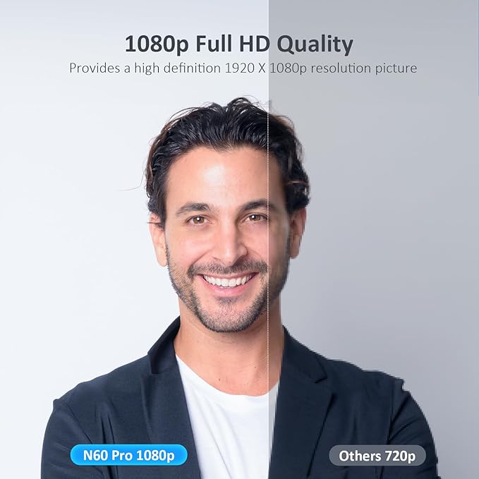 - 【Full HD 1080P Webcam】Powered by the 1080p FHD two MP CMOS, the NexiGo N60 Pro Webcam produces exceptionally sharp and clear videos at resolutions up to 1920 x 1080 at 30fps.