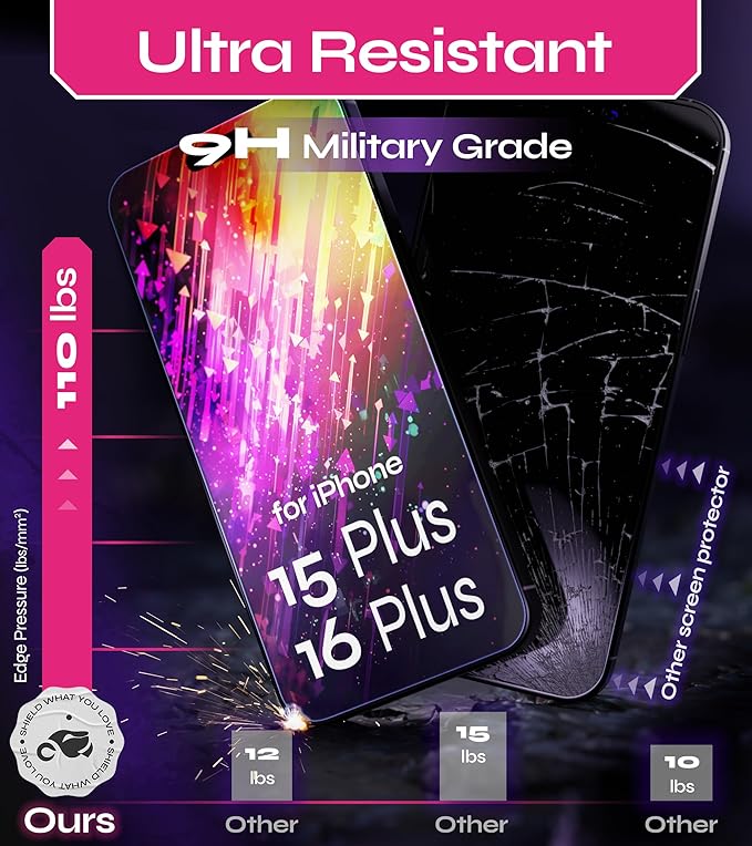 - Ultra Resistant: Military-Grade Tempered Glass offers unmatched Shatterproof and Scratch-Resistant Performance; ideal for iPhone Screen Protector 15 Plus / 16 Plus and Tempered Glass for your iPhone 15 Plus / 16 Plus for Ultimate Protection