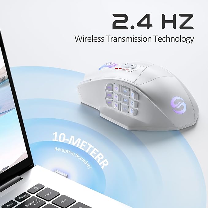 - 【Dual Modes with Ultra-Speed Wireless Technology】UtechSmart VENUS Pro RGB Wireless MMO Gaming Mouse is a new revolution of RGB MMO gaming mouse. It has 2.4 GHz data transmission technology with a Mini signal receiver (Nano) and stable 1. 5m wire transmission that provides professional-level performance. VENUS Pro overcomes the traditional limitation of wireless latency and connectivity which offers stable and fast data transmission with a 10-meter reception boundary. You can take this mouse anywhere!
