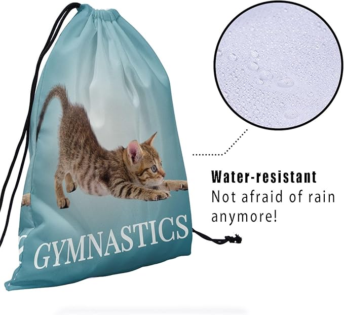 - 【EASY ACCESS TO ITEMS】 The equipped drawstring closure design can help to quickly store items, take them in and out easily. No wasted practice time searching for lost items or forgotten grips at home or in car. Reusable, comfortable to carry, easy to keep safely, the cute cat gymnastic gym bag is sure to last well through hard training sessions for any of your favorite sports!