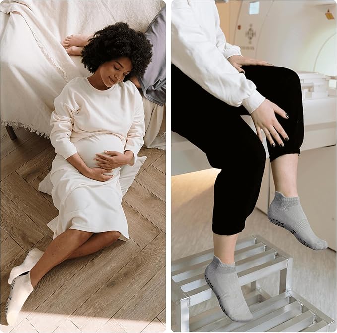 • 【HOLD YOUR POSE WITH EASE】These stylish and casual non slip yoga socks will provide you with all the grips you need for your routine on home, gym, studio and so on. But they are also ideal as hospital socks, perfect for physiotherapy, elderly care, pregnancy and more to prevent falls from stairs , or the floor.