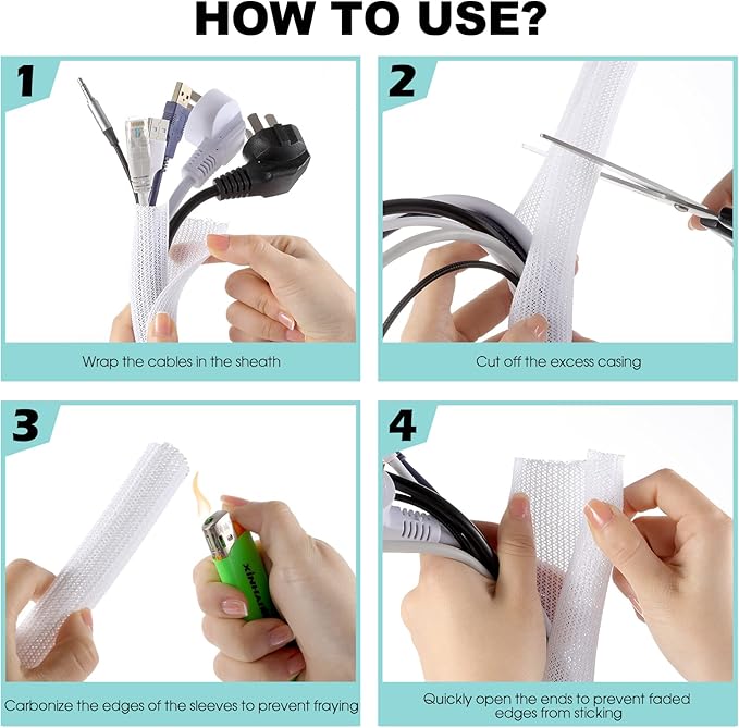 - 【Wire Cover for Many Cable +Easy to cut 】The cable tube can be easily cut with scissors. Length: 10ft. Diameter: 1inch. More cables can be held. Especially suitable for corners. It is recommended to cut the cutting position with a fire after cutting to prevent spreading