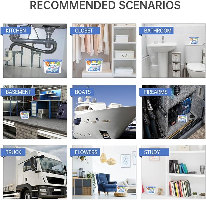 - 【Premium Quality】–To prevent water leakage, NATRUTH Closet moisture absorber designs with unique lock wet paper and high-quality collecting layer. This dehumidifier remover works great for your bathroom, basement, kitchen, laundry room, etc.