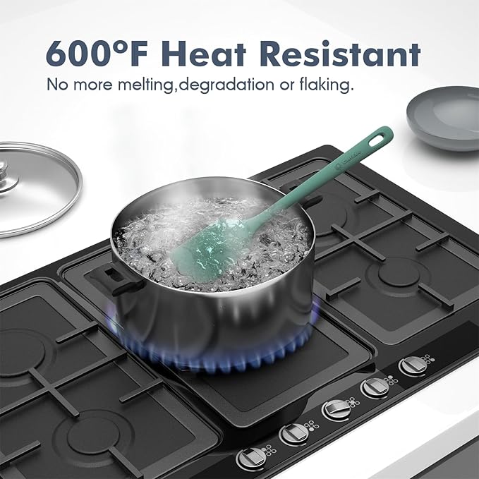 - Premium 100% Food Grade Silicone: The silicone spatula set is made of healthy and friendly material, resistant to high temperatures. No more melting, cracking and worrying