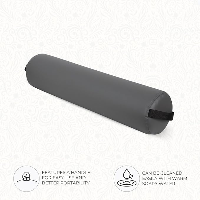 - Portable Bolster: Bolster pillow features carry handle for ease of use and portability.