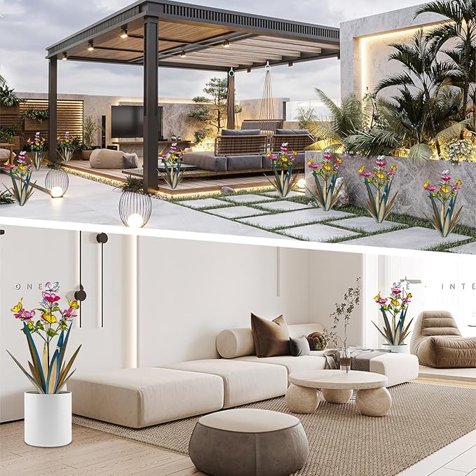- [Cute design garden peg decoration] : Wings can be opened or closed for various displays. The thin metal stakes are easy to hide, creating the illusion of a real butterfly. Their vibrant colors and lifelike appearance will transform your garden into a beautiful and charming oasis.