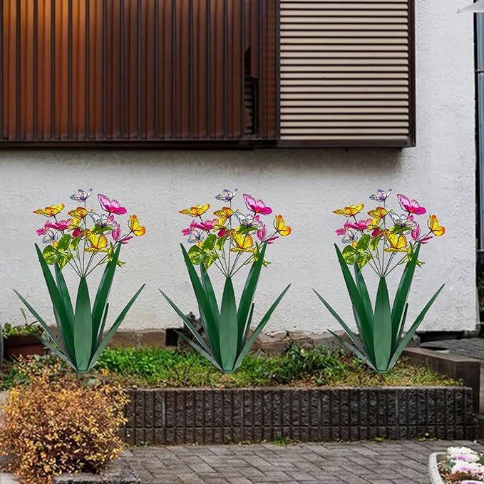 TOMBABY Garden Outdoor Butterfly Enlarge Thickened Wind Resistant Metal Agave Garden Art Metal Plant Country Sculpture Statue Decorations Ornaments Artificial Waterproof Butterflies(Green 3pcs)