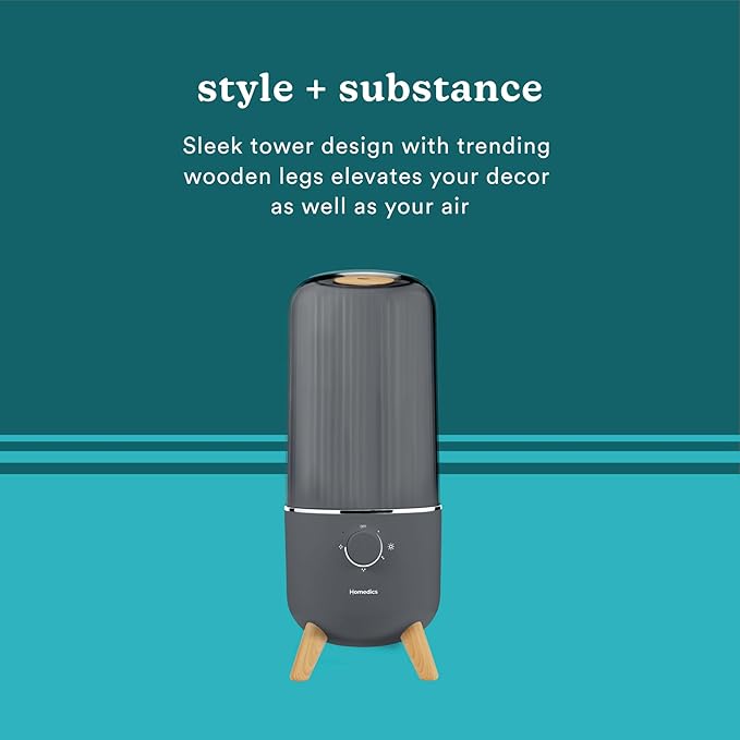 Homedics Ultrasonic Humidifier, Bedrooms and Home Offices, 0.97-Gallon Tank, 45-Hour Runtime, Visible Ultra-Quiet Cool Mist, Aromatherapy, Demineralization Cartridge, Night-Light, Auto-Off, Platinum