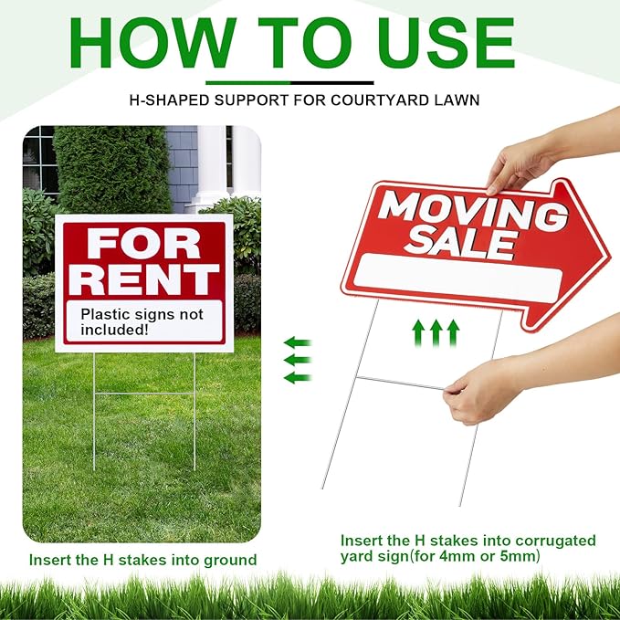 - Iron Wire Material: these yard sign stakes are made of stable iron wire that ensures their longevity and robustness; Known for its resilience, the iron wire provides strength to the stake and can withstand wind, rain and sunlight without rusts or corrosion, delivering a longevity