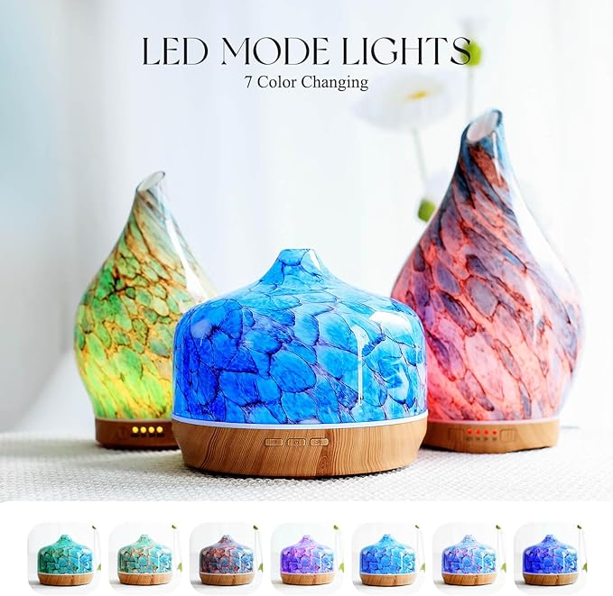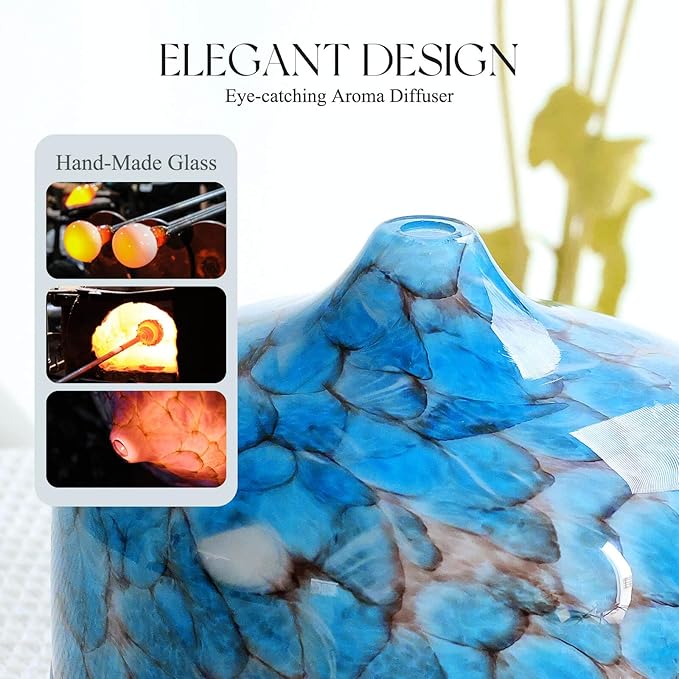 - UNIQUE ART DECORATIVE DESIGN - Our 500ml glass essential oil diffuser has an elegant starry pattern glass cover and wood grain decorative base.It is very suitable for your bedroom, living room, children's room, study room, office and yoga room.