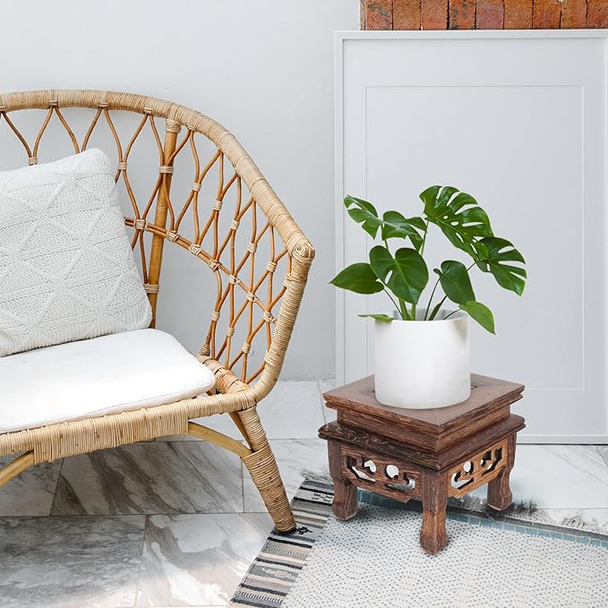 YARNOW Base Flower Pots for Indoor Plants Woodsy Decor Botanical Decor Fish Bowl Wooden Base Small Stool for Plant Wooden Flower Pot Brown Flowerpot Stand Platform Flowerpots Base