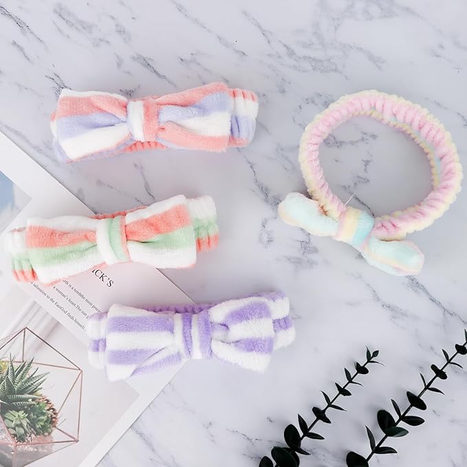 - Durable: These skin care headbands bulk including 8 pcs different color striped spa head bands. Cute bow design, you can sharing these headband with your sisters, family and friends. these bow spa headbands are the necessary spa accessories for spa party.