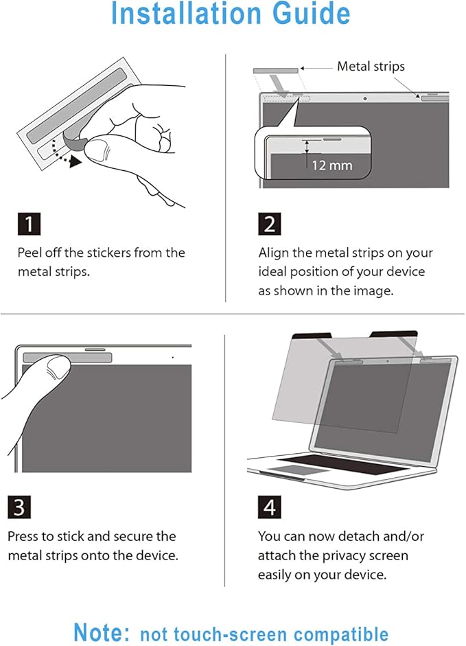 - 2.【Magnetic Removable Installation】:Our laptop privacy screen filters are designed with a magnetic attachment. Simply attach the magnet to the top of your laptop and let the privacy screen protector attach to your computer screen.The 13.3 inch laptop screen protector avoids the damage that can be caused by using adhesives, and the screen can be easily removed and reinstalled whenever needed.