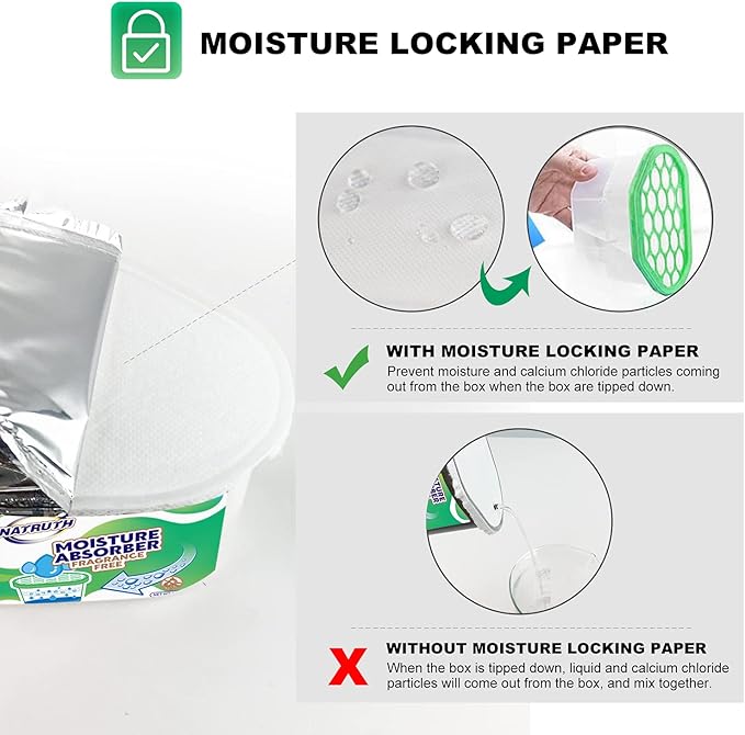 - 【EFFECTIVE DEHUMIDIFICATION】The NATRUTH moisture absorber box can effectively absorb extra moisture from the air and trap the moisture in box. This product features a large capacity of 10.5 oz globular calcium chloride particles inside moisture absorber could efficiently enlarge the dehumidifying area , keeping the place comfortable for a longer time.