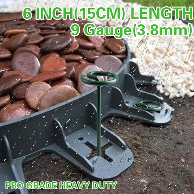 - Easy to Install - These sturdy steel landscape stakes have a pointed tip for faster, deeper insertion into the soil(except concrete and rock). For smaller projects, you don't need to hire a professional to install them, and just gently tap the landscape staples with a rubber mallet or wooden hammer and easily insert them into the soil in just 30 seconds.