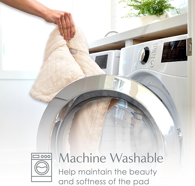 - Ultra-Soft, Patented-Designed Heating Pad: Inspired by organic, natural elements, this stylish 31.5” x 24" back & neck heating pad is a patented design that lets you indulge in luxurious heat therapy where you need it most. The unique, curated pattern with embossed stitching, meticulous design with a nod to high-end fashion and home decor,egant hue, el and high-quality fabrics of faux fur and micromink that’s ultra-soft and plush makes this a luxury heating pad that looks as good as it feels.