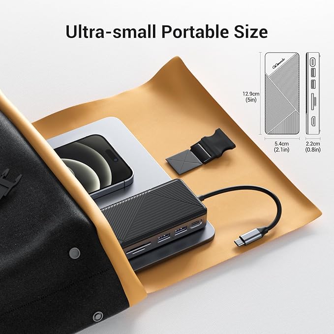 - Handy for Easy Carrying: Size small, 5x2.1x0.8 inch, lightweight for just ounces. This docking station uses a 0.65 ft USB-C signal source input cable, which is non-detachable, never encounter cable losing messes. Sturdy and handy, making it easy for your business cruise