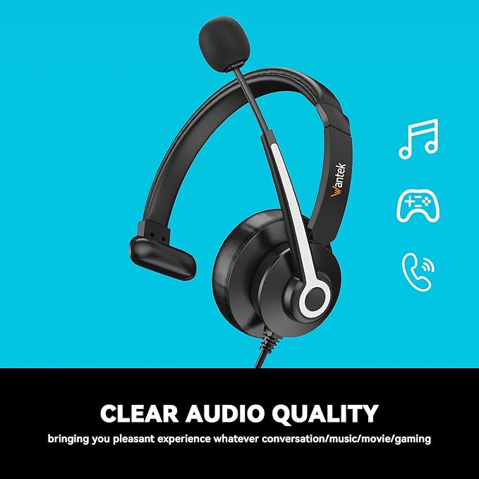 Wantek USB & 3.5mm Headset with Mic for PC/Laptop,Wired Headset with Noise-Cancelling Microphone & Audio Controls Perfect for Home Office Online Class Skype Zoom Call Center Webinar,Monaural