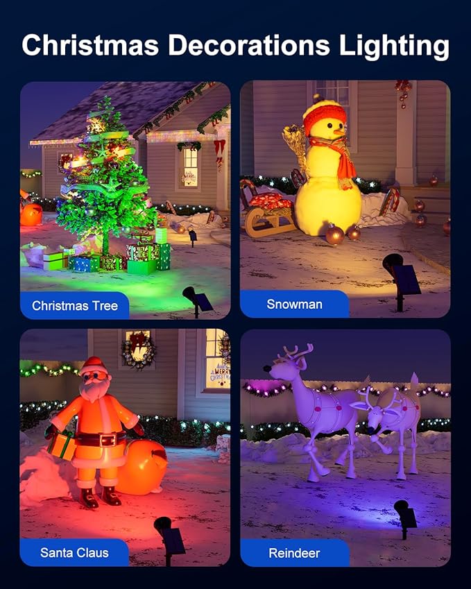 - Personalised Light Color for All Festivals: The color changing solar spot lights are not only suitable for Christmas, but also meet the needs of other festivals such as Halloween, Easter, Independence Day, etc. You can choose the appropriate light colours according to the characteristics of different festivals to create personalised scenes, making your home and yard show unique charm in every festival