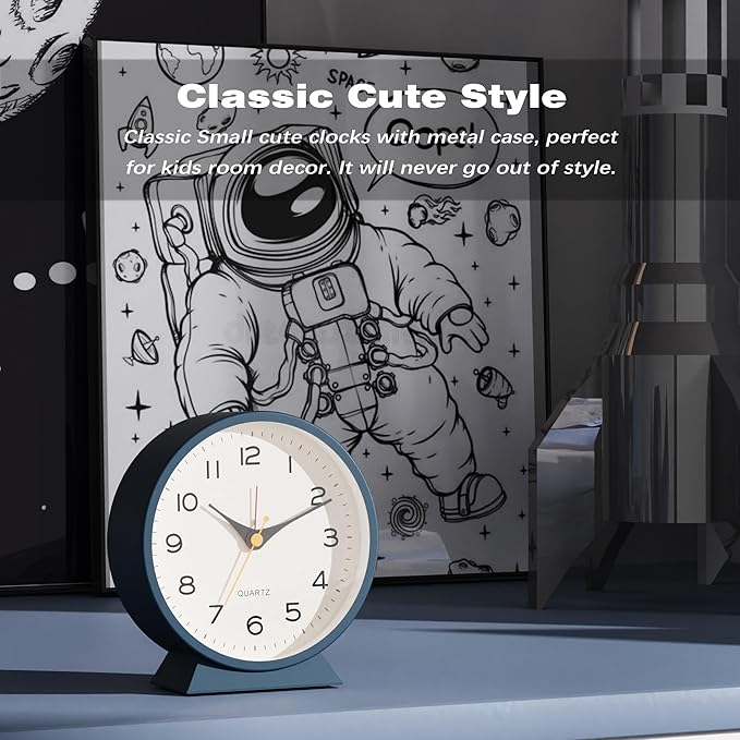 AYRELY® 4.5" Analog Alarm Clock,Small Retro Desk Clock Battery Operated,Slient Metal Table Clock with Light for Living Room Decor,Bedroom,Bedside (Blue)