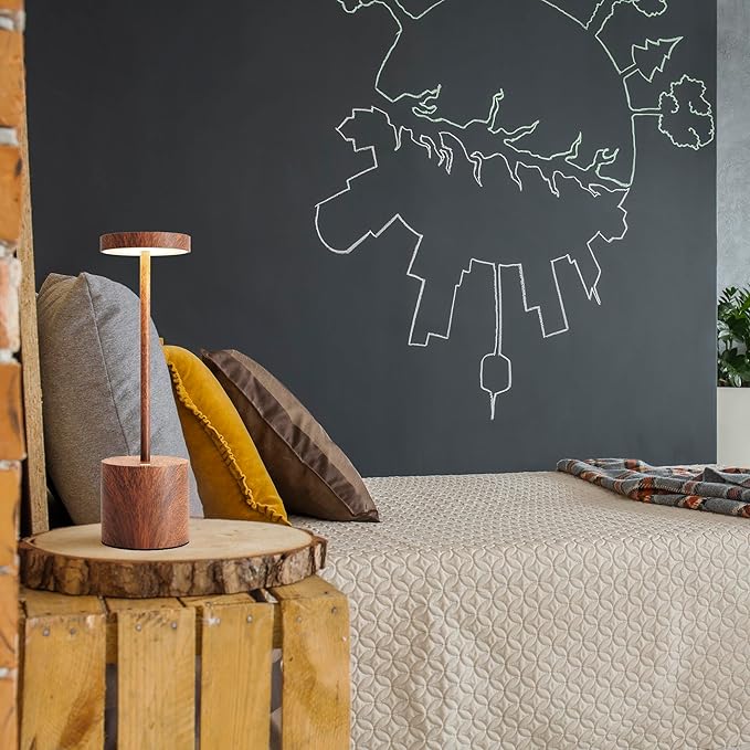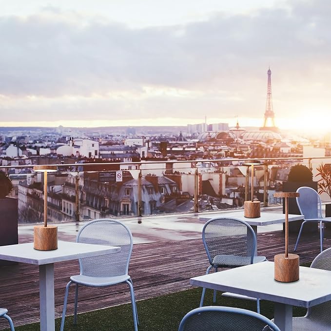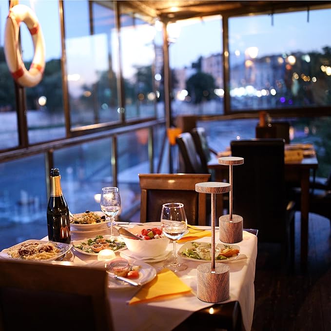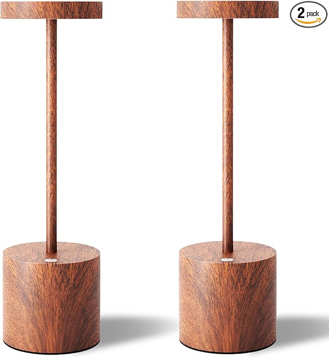 LED Cordless Table Lamps Set of 2,Portable Rechargeable 5000mAh Outdoor Table Lamp,3 Color Stepless Dimming Battery Powered Lamp, Table Light for Outside/Patio/Restaurant/Home.(Wood Grain)
