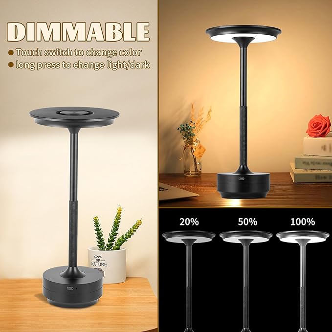 - ❤️[ Portable cordless desk lamp ]: Metal LED battery lamp, battery powered lamp, equipped with 5200 mAh rechargeable lamp. You can always connect the cordless light to the socket, just like a normal bedside night light. You can also disconnect it as needed and carry a portable battery desk lamp to increase safety. Or, take it to camping outdoors as spare rechargeable lamps.