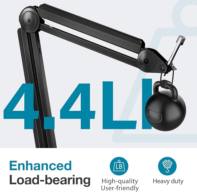 - Robust Build & Superior Load-bearing: Precision-crafted from high-grade steel with a reinforced microphone arm tube, supporting up to 4.4 pounds effortlessly. Ideal for heavyweight microphones like Yeti and SM7B, ensuring stability and reliability.