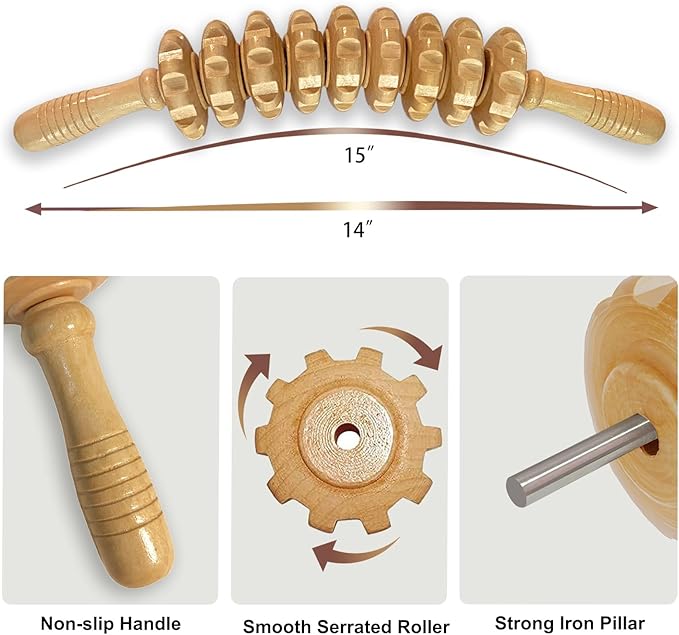 - Material: Made of natural wood, the surface is smooth, no burrs, and it is friendly to the skin, it is equipped with a high strength, good toughness steel wire flexible shaft, which can be bent within a certain range, it can better contact the skin during massage, durable and practical.