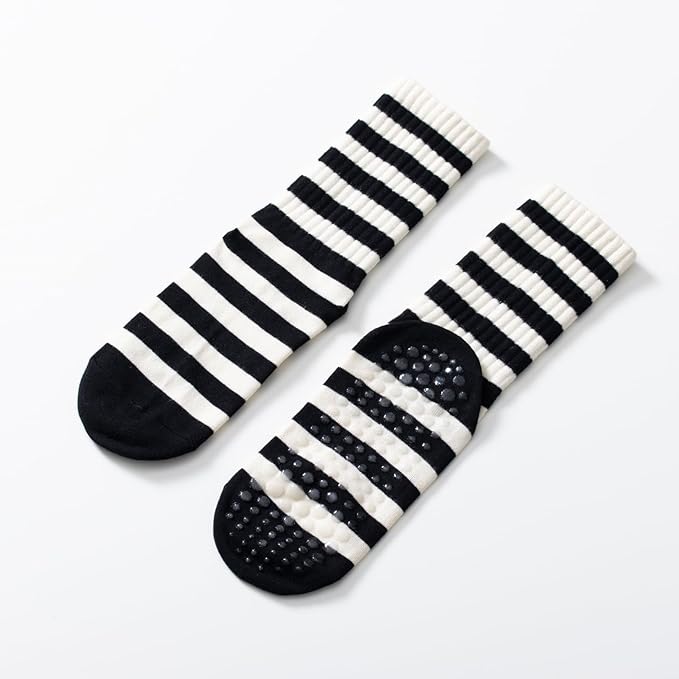 Yoga Pilates Socks with Grips for Women Non Slip Striped Cushioned Crew Socks for Barre Ballet Dance