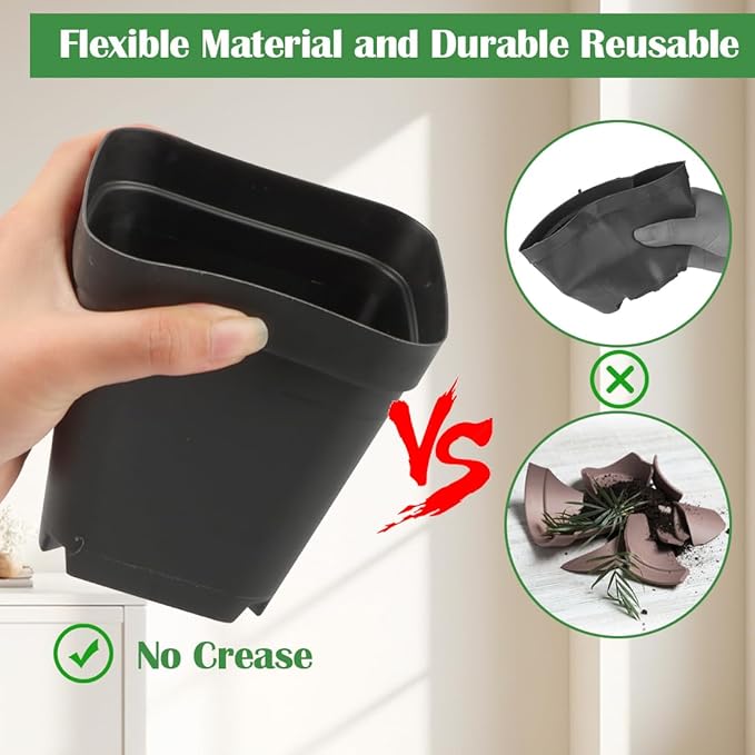 - 【High Quality Material】Our 3.15 inch square nursery pots with tray, is made of high quality new material, BPA free, with high toughness, not easily deformed, good thickness and easy to transplant. Added anti-aging factor, long life, reusable. When you're using the square box, don't worry about it falling over.
