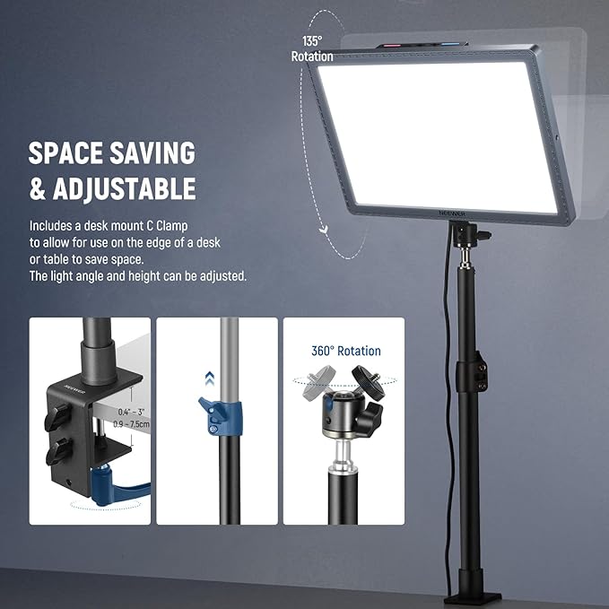 - 【Flicker Free & Excellent Color Rendition】 With a professional hardware circuit, the light source is free from flickers and glare. High CRI97+ and TLCL98+ for accurate color reproduction. Lighting is easy on the eyes after a long period of use. Apart from lighting for video conferencing, Zoom Call, gaming live streaming on your computer, it’s also a lighting accessory for YouTube/TikTok/podcast and other social media content creators/influencers on selfies, creative photography, and videography