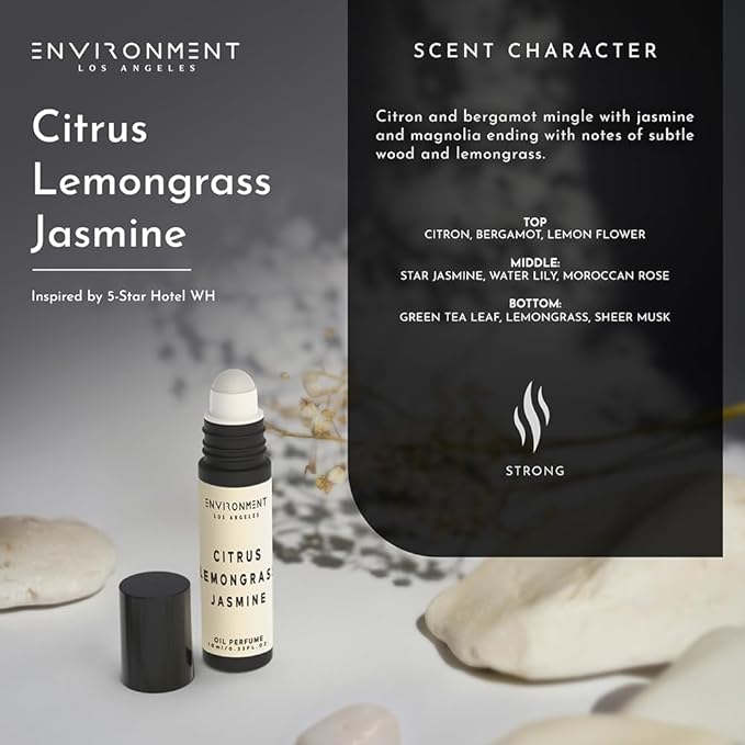 Environment Inspired by 5-Star Hotels WH 10ml Roll-on Perfume (Citrus | Lemongrass | Jasmine) Body Oil Fragrance, Roll On Oil, Body Fragrance for Women & Men, Luxury Scents, Vegan & Cruelty-Free
