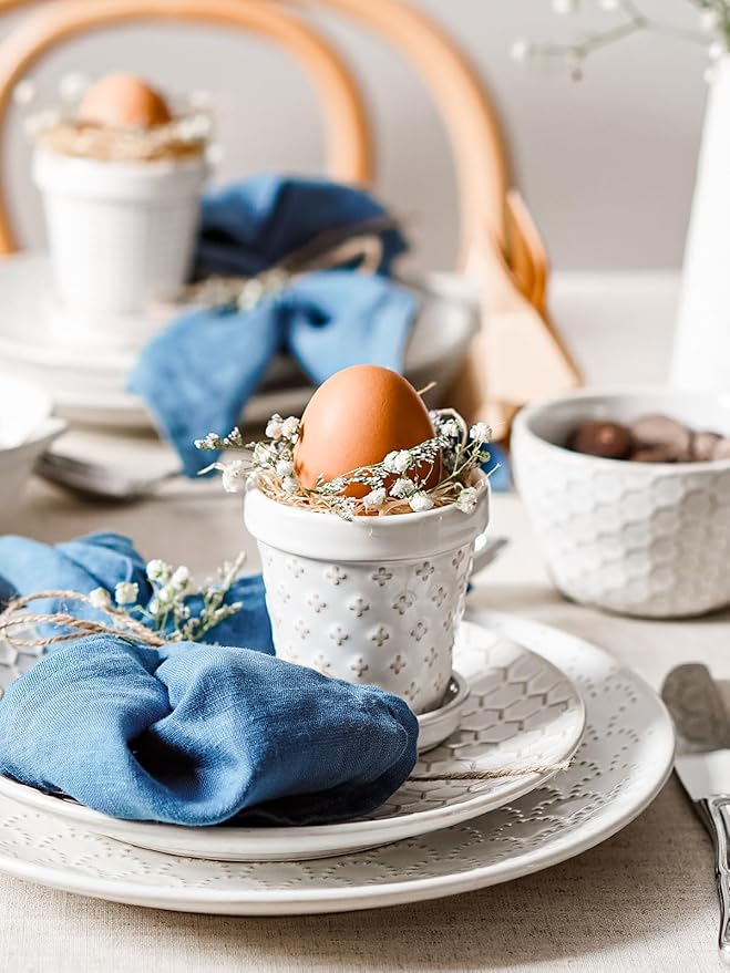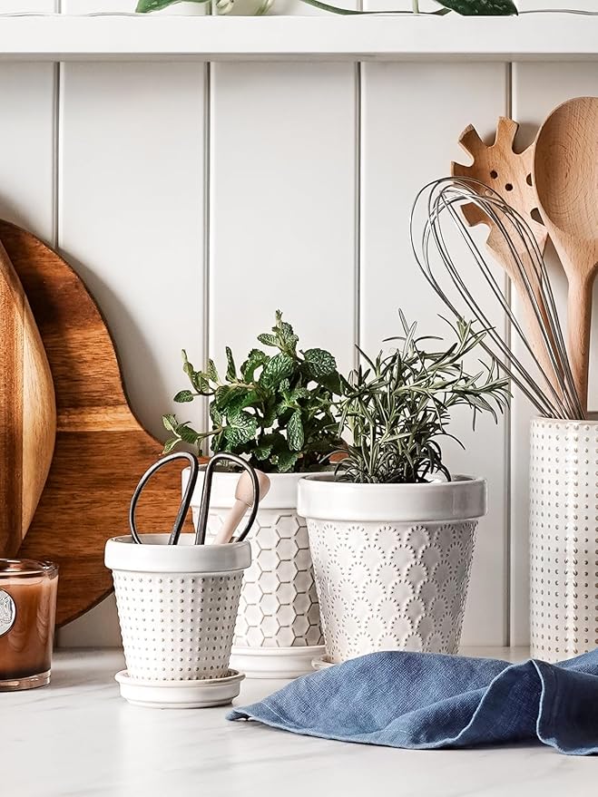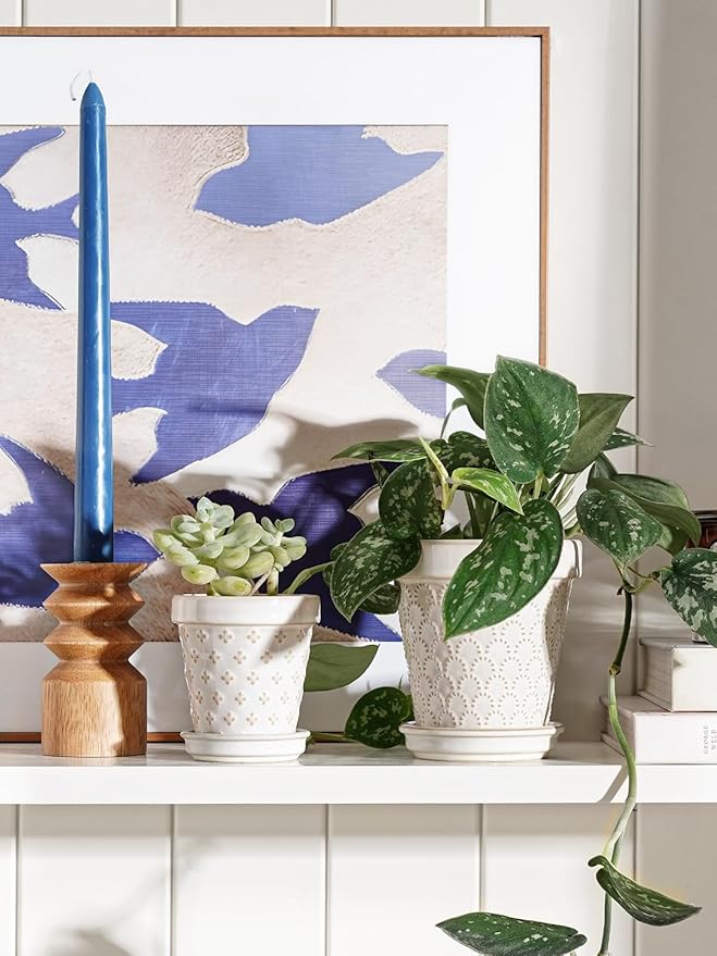 - Elegant & Space-Saving Decor: The beautiful arctic white glaze and raised embossed patterns add a touch of elegance to any small space. Their tiny footprint allows you to decorate areas where larger pots can't fit—on narrow bathroom counters, office cubicles, bookshelves, or as a cute centerpiece on a side table