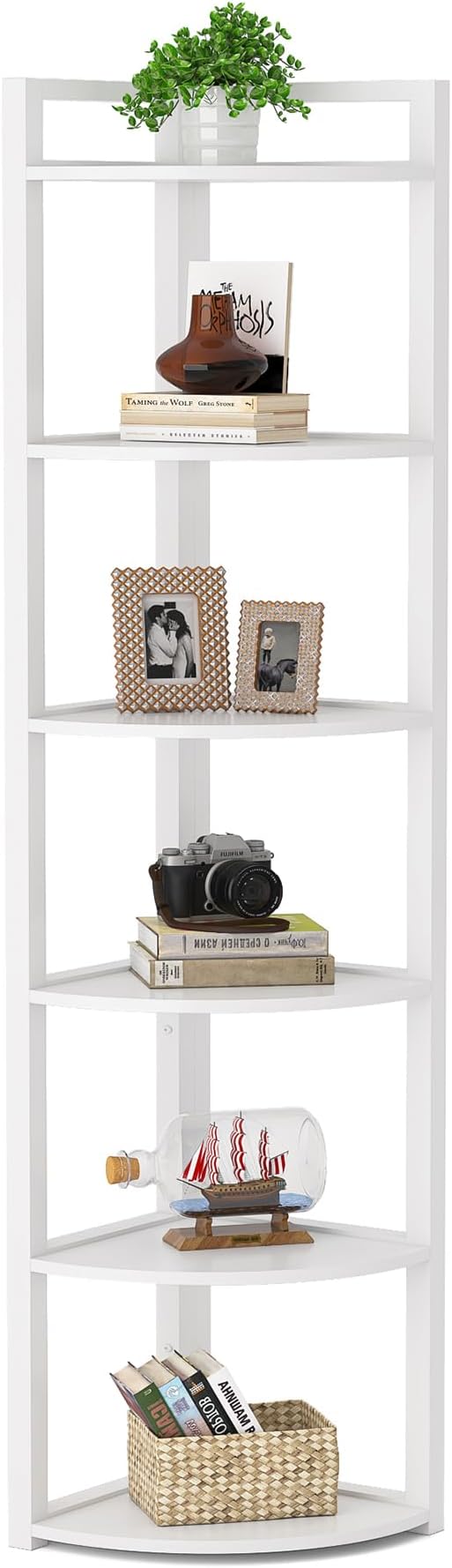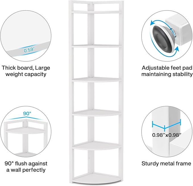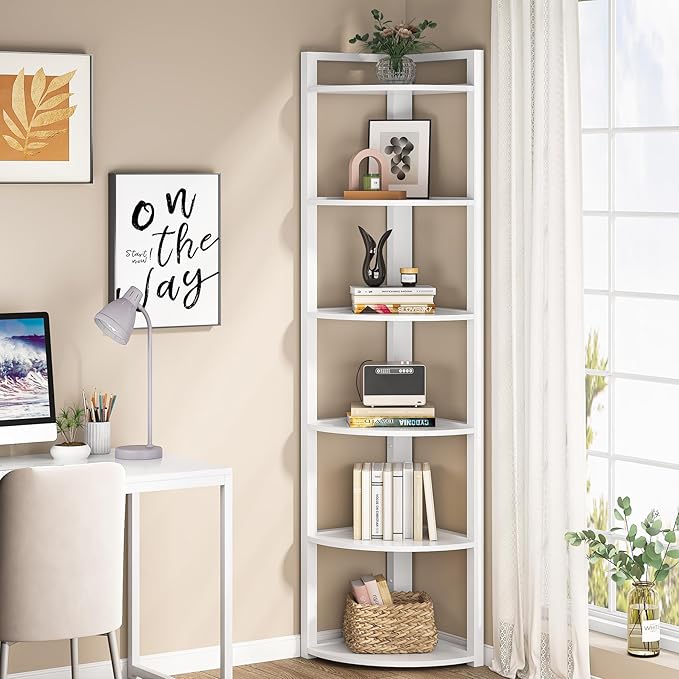 Tribesigns 6 Tier Corner Shelf, 70.9 Inch Tall Corner Bookshelf Small Bookcase Modern Corner Shelving Unit Storage Rack for Living Room, Home Office, Kitchen, Small Space (White)