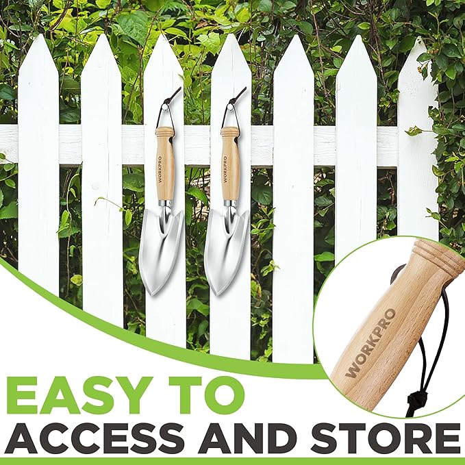 WORKPRO 11" Garden Hand Trowel, Heavy Duty Polished Stainless Steel Garden Shovels with Wood Handle, Small Gardening Hand Tools for Digging, Planting, Measure, Transplanting