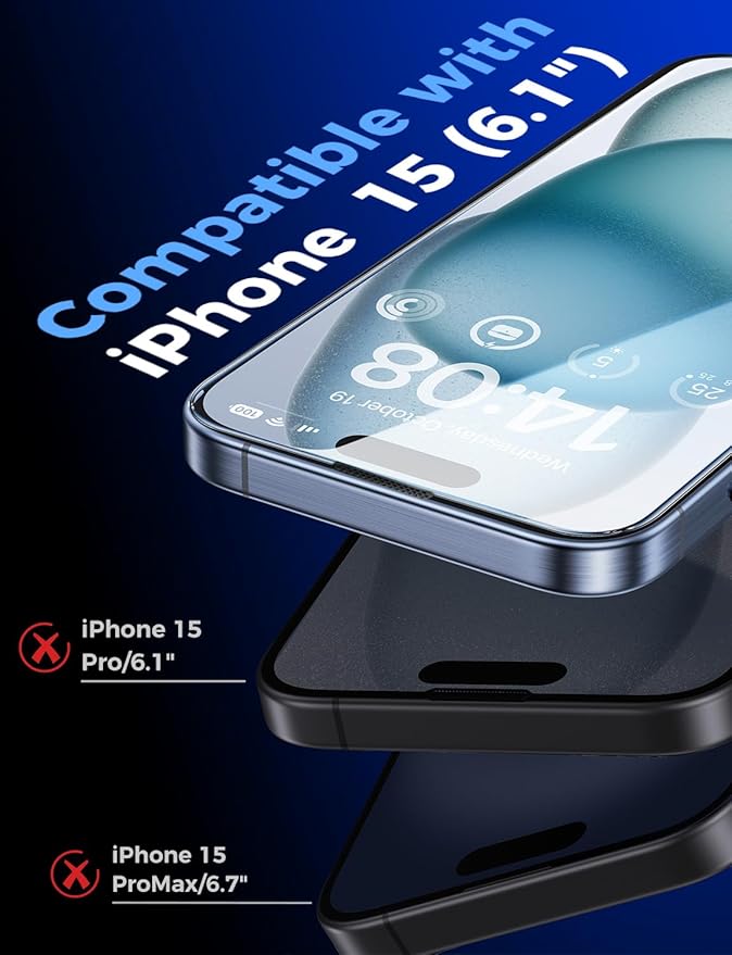 - [Screen Protector Compatible with iPhone 15 6.1"] Specially designed ONLY for iPhone 15 6.1", 100% touch accurate. Not compatible with any other iPhone models.