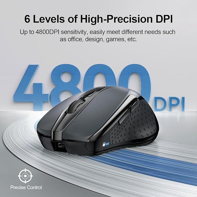 - 6 Adjustable Level: This computer mouse offers 6 adjustable DPI levels (4800/3200/2400/1600/1200/800), allowing you to easily customize DPI to suit your preferences. Whether you need precise control for detailed work or swift movement for browsing, this wireless mouse for laptop has you covered.