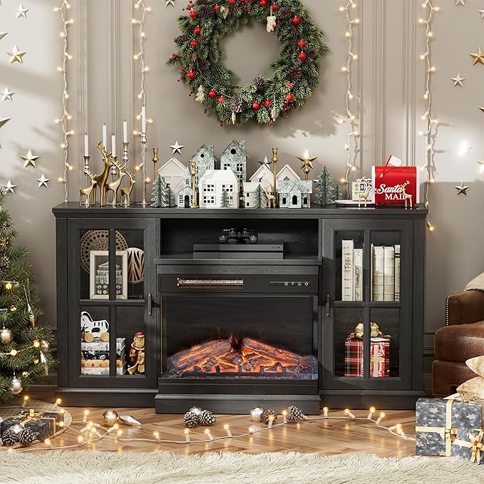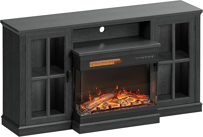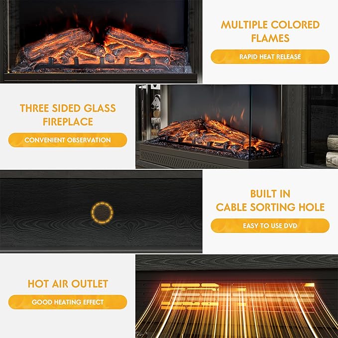 - Immersive Fireplace Experience: Designed for 65" TVs, this 59"(W) x 13.7"(D) x 31.6"(H) console offers expansive storage for gaming consoles, sound systems, and media accessories. Features a built-in 26" 3-sided panoramic fireplace with lifelike flames and smart temperature control, delivering warmth and ambiance while ensuring safety during movie nights or gatherings.