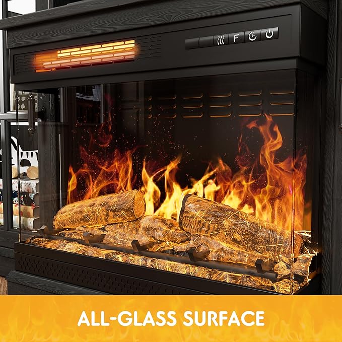 - : Style 3-Side Glass Fireplace TV Stand