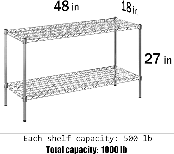 18" Deep x 48" Wide x 27" Height Wire Shelving Kit | 2-Tier | NSF Commercial Storage Rack Unit