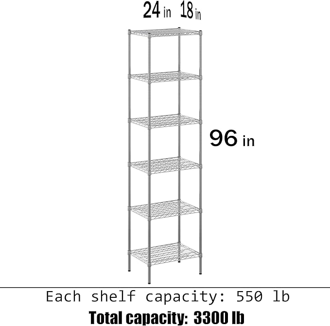 18" Deep x 24" Wide x 96" Height Wire Shelving Kit | 6-Tier | NSF Commercial Storage Rack Unit