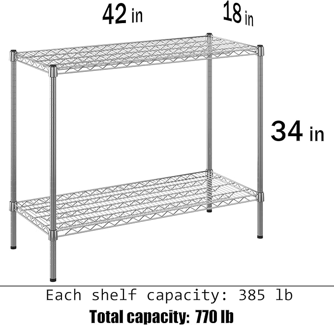 18" Deep x 42" Wide x 34" Height Wire Shelving Kit | 2-Tier | NSF Commercial Storage Rack Unit